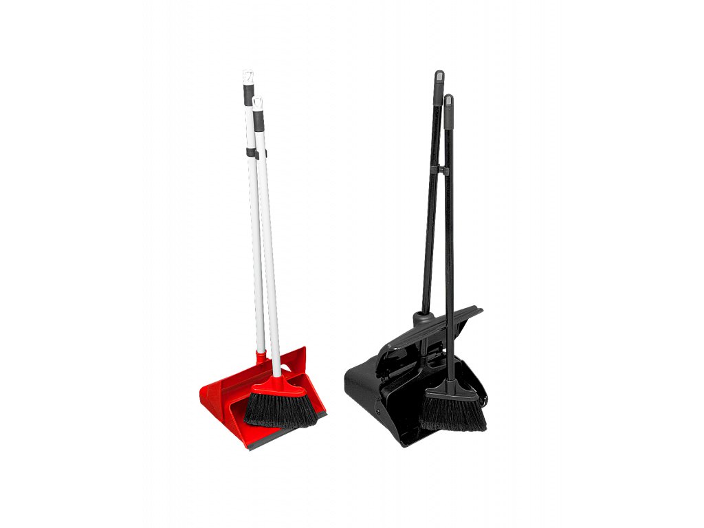 Ruční smetáček a lopatka z plastu na dlouhé rukojeti k snadnému použití. Výše rukojetí je 95 cm od země. Rukojetě jsou k sobě sepnuty sponou.